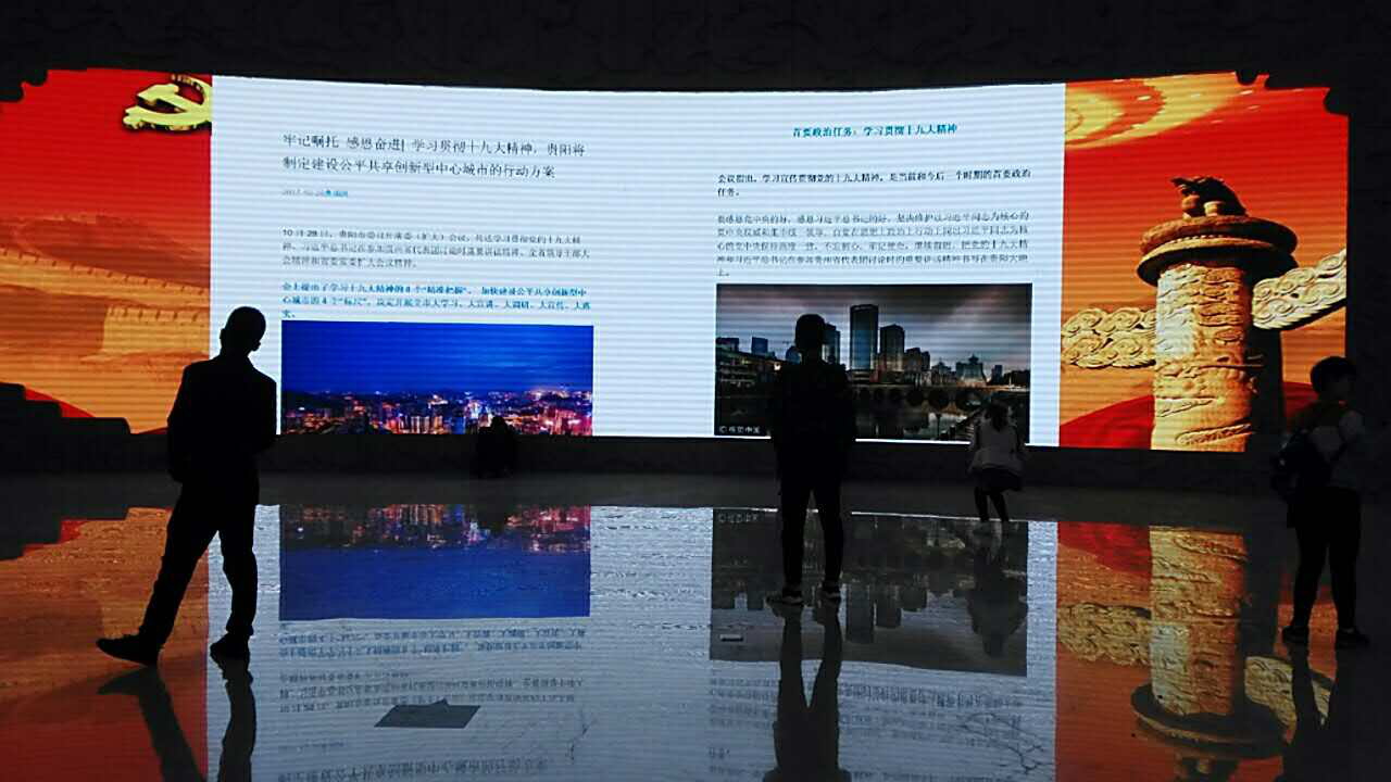 二是实现宣传氛围全馆覆盖。将十九大的精神内容在馆内新闻导读机上进行发布,便于参观群众的随时查看和了解。利用馆内各楼层的多媒体信息发布平台和四楼物理沙盘演绎区的大屏幕展播喜迎十九大宣传内容,营造良好的全馆宣传氛围。